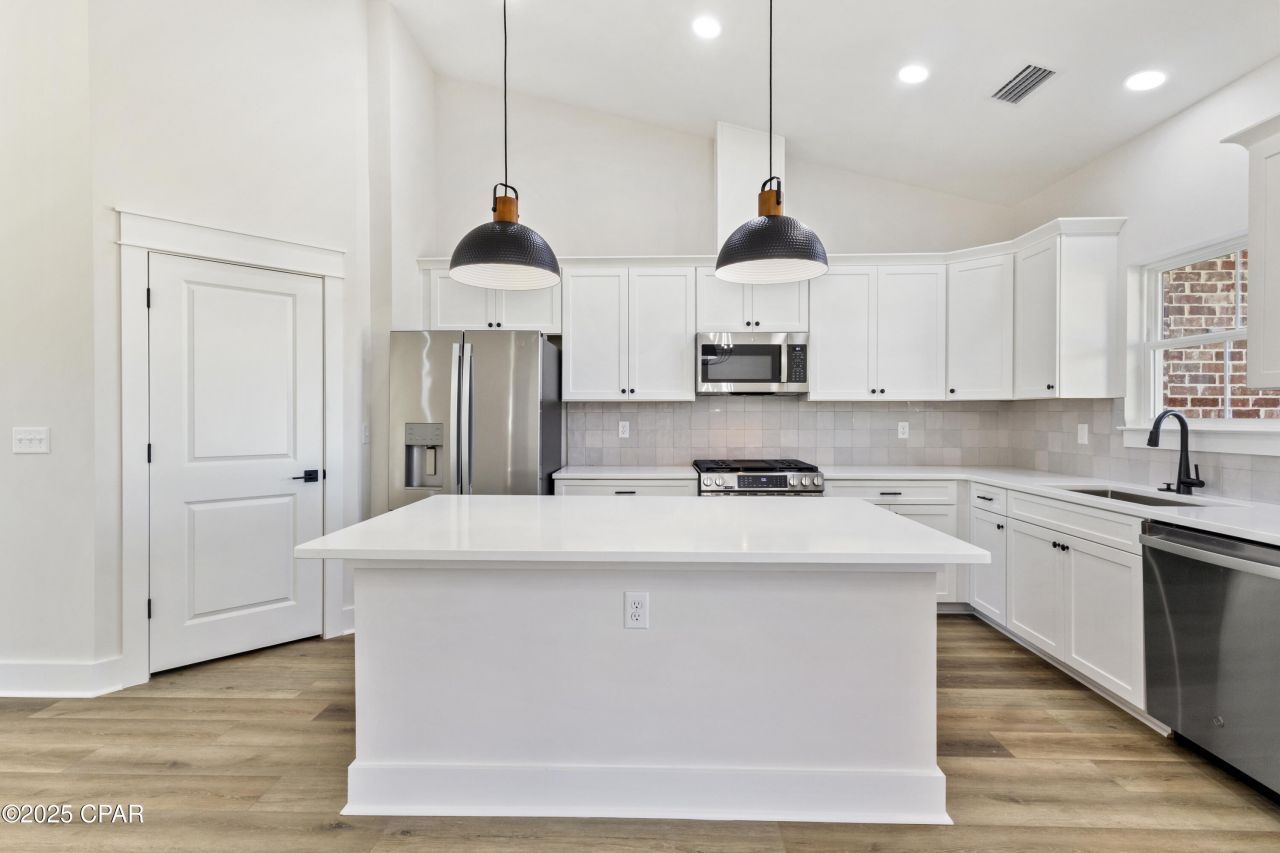 Receive up to $8,000 toward closing costs: $3,000 from the preferred lender and up to $5,000 from the builder. Built by Southern Coastal Homes, a trusted local builder known for solid construction and efficient floor plans, this home is located in the Game Farm community in central Panama City. The neighborhood offers wide homesites, three-sided brick homes, natural areas, ponds, and planned parks. The home features durable, high-quality materials and upgrades, including three sided brick construction, Hardie board siding, a tankless gas water heater, 9-foot ceilings, recessed lighting, a gas range, refrigerator and a gas line for an outdoor grill. The yard is fully sodded with an irrigation system. The layout is practical and functional, with vaulted ceilings in the living room and a tray ceiling in the primary bedroom. The primary bath includes double vanities, a walk-in shower with glass door, and a large walk-in closet. Additional features include a garage utility sink and cable TV outlets in all bedrooms plus outdoor porch. Move-in ready. Buyer to verify all important information.